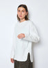 Tiefe Seitenschlitze, Rundhalskragen und Oversize schnitt. Perfekt für einen Lagenlook.