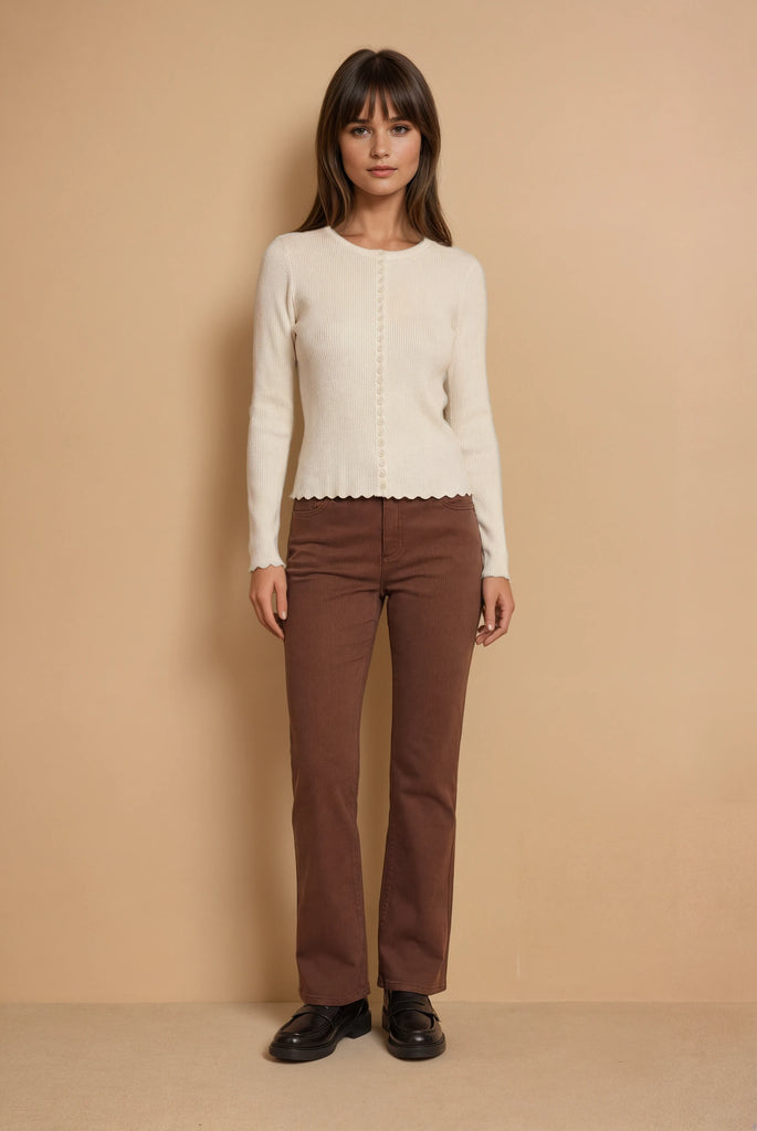 Weißes Langarmshirt mit Knopfleiste – Figurbetonter Schnitt
