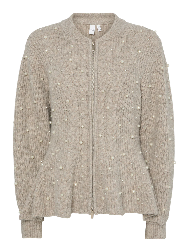YAS, tailierter Perlen Cardigan mit Reißverschluss