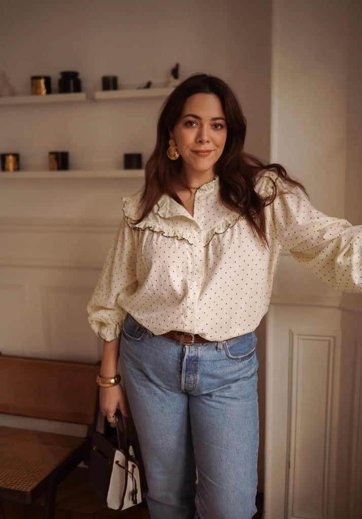 Styling-Tipp: Kombiniere die Bluse mit Jeans und Loafern für einen modernen French-Chic-Look oder mit einem Midirock und Stiefeletten für ein elegantes Outfit.
