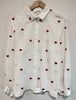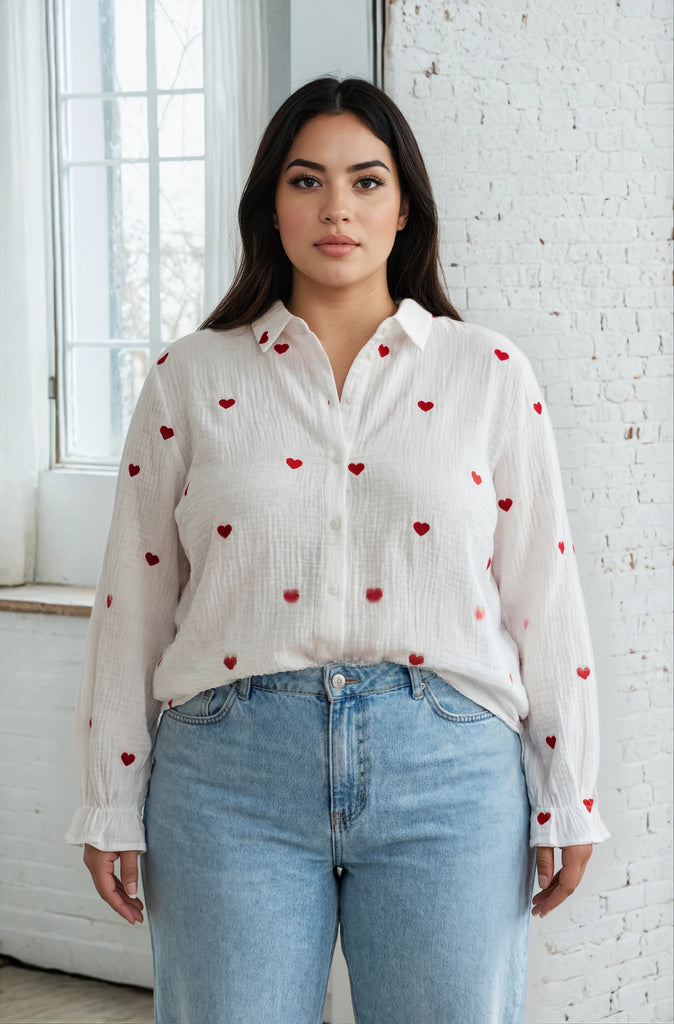 Hemdbluse aus Musselinbaumwolle mit bestickten Herben. An den Ärmeln mit kleinem Volant und Gummizug.