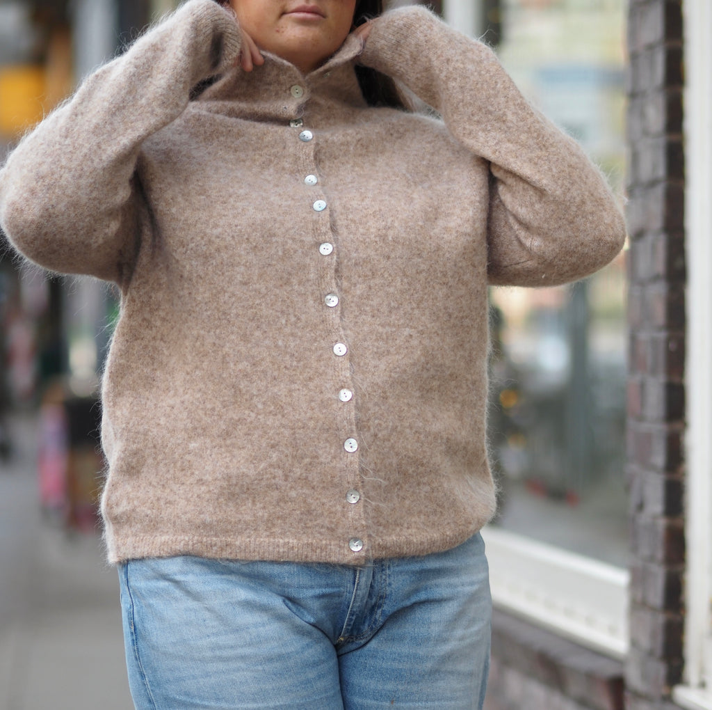 Indira, ein Strickjacke mit weichem Fall, ist aus einem weichem, wolligen Stoff gefertigt. Ob zugeknöpft oder offen getragen, Indira verleiht einen klaren, modernen Look. Details • Weicher Strick • Perlmuttknopfleiste vorne • Kann offen oder geschlossen mit Stehkragen getragen werden • Lange Ärmel • Gerader Schnitt • Saubere Verarbeitung