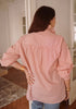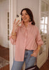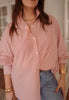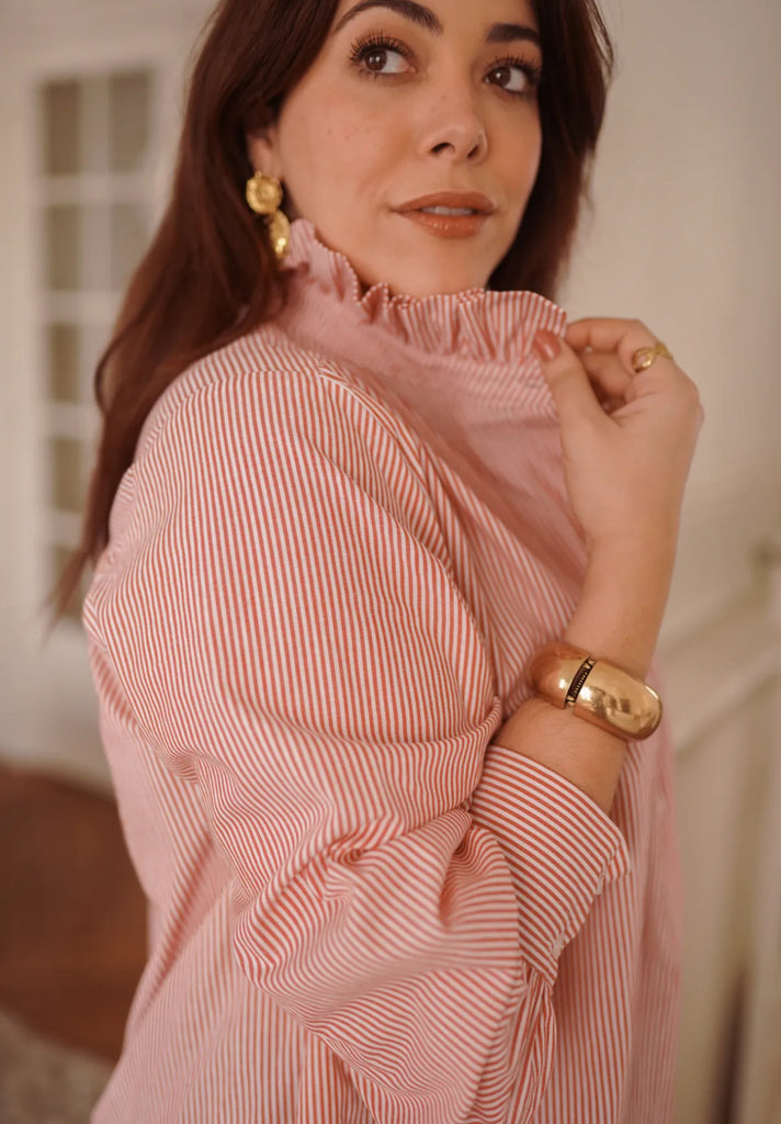 Tolle Streifenbluse in Rot/weiß mit hohem Kragen und Knopfleiste. Lässig zu Jeans.