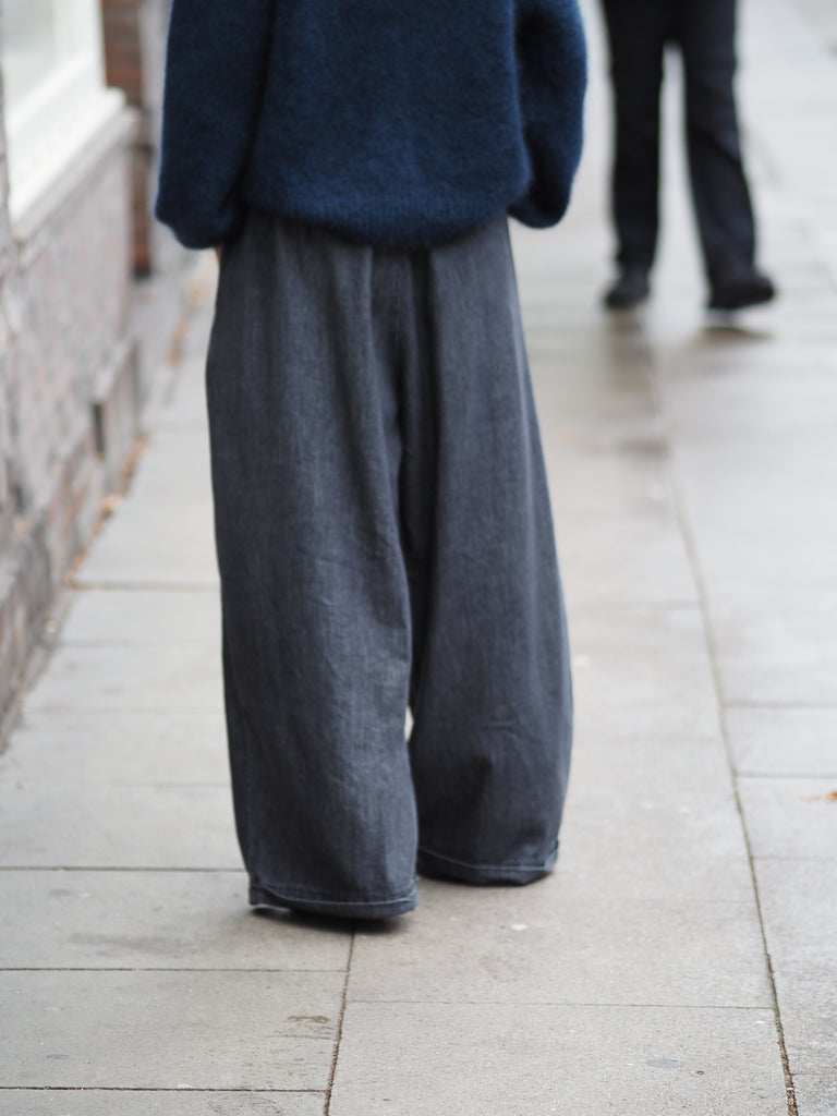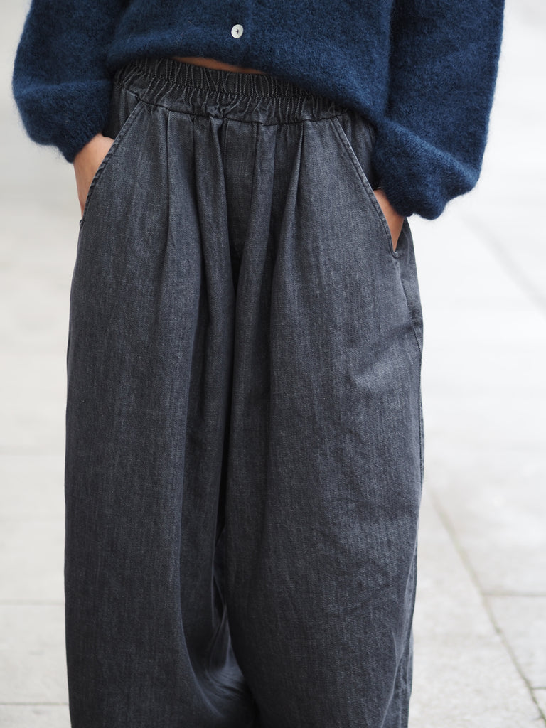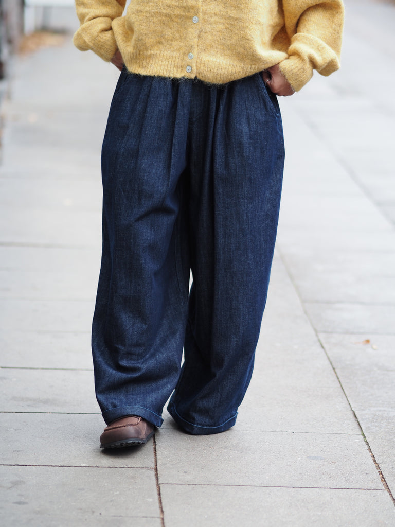 Sehr weite Jeans mit Gummizug am Bunt und tiefen Seitentaschen.