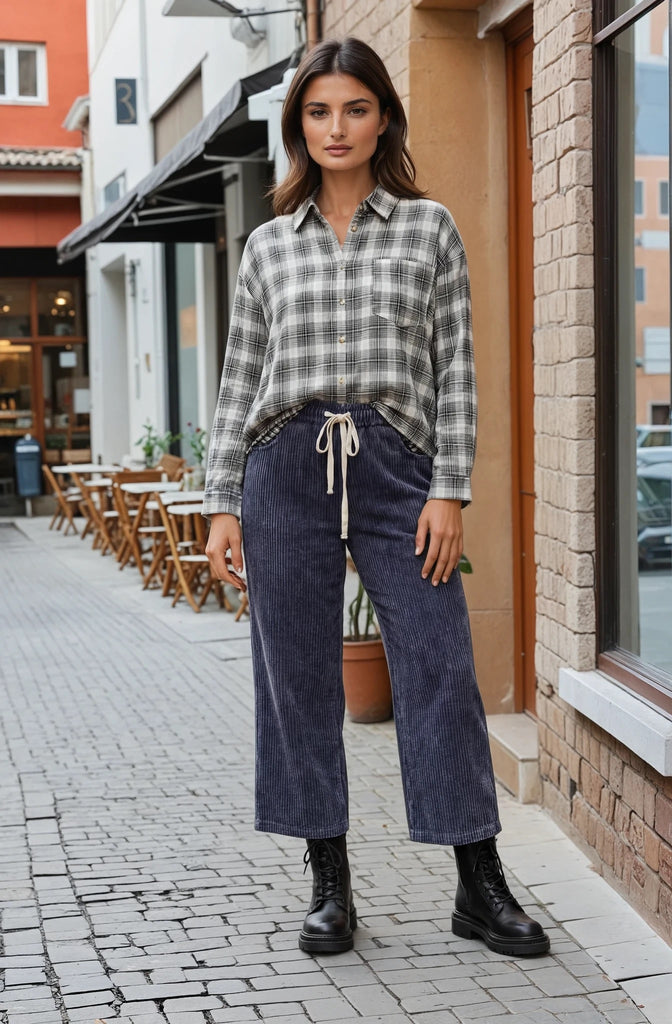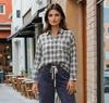 Kariertes Baumwollhemd in grau, schwarz, weiss. Innenfutter, schwarz weiß karriert.