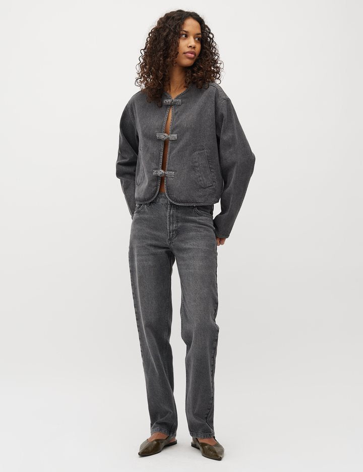 Jeans-Blazerjacke mit dekorativem Knopfverschluss. -