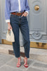 Entdecken Sie den neuen Trendschnitt, der in den kommenden Monaten in jede Garderobe Einzug halten wird. Die Bony Jeans besticht durch ihre strukturierte Form mit Ballon-Bein-Effekt, die der Trägerin einen modernen und markanten Look verleiht. Dank ihres hohen Bunds strukturiert die Bony Jeans die Silhouette, indem sie die Taille betont, und ihr grafischer Beinschnitt verleiht jedem Ihrer Outfits Charakter. Die Bony Jeans lässt sich ganz einfach kombinieren und kann mit einem weißen T-Shirt und Sneakers oder mit einem Hemd und Heels getragen werden, um den lässigen Barrel-Leg-Style aufzulockern.