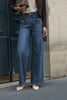 Die Heloïse Jeans hat ein weites Bein. – Hohe Taille – 4 Taschen – Gürtelschlaufen – Reißverschluss und Knopf 99 % Baumwolle, 1 % Elastan