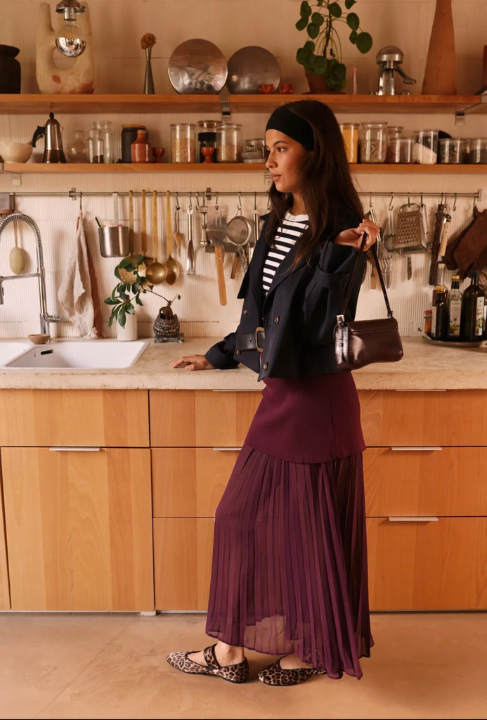 Ein neues Trendteil. Maxi Rock mit plissiertem transparenten Teil und einem Breiten Stoffteil am Bund.