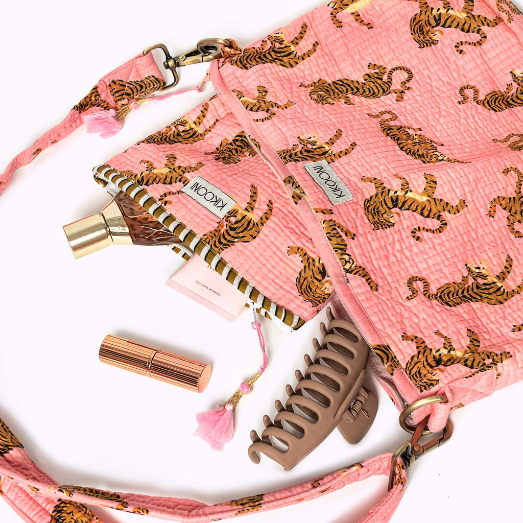 K Bag - die Tasche die alles kann und dabei gut aussieht! Die K BAG "Electric Tigress" ist mehr als nur eine Tasche. Sie ist dein neuer Everyday Begleiter mit Stil und Stärke. Ob für den Alltag oder das nächste Abenteuer, diese Tasche ist immer dein perfekter Begleiter. Unsere vielseitigen Crossbody- und Slingbags aus Baumwolle vereinen farbenfrohes Design mit praktischer Funktionalität. Jede Tasche verfügt über eine separate Innentasche für mehr Übersicht und sicheren Stauraum. Dank des abnehmbaren und längenverstellbaren Gurts lässt sich die Tasche flexibel tragen – als lässige Crossbodytasche, kompakte Handtasche oder eng anliegende Slingbag. Perfekt für Alltag, Reisen oder Festivals! Und es ist wirklich erstaunlich was alles in diese Tasche passt! Das Beste: Unsere K Bags sind pflegeleicht und waschbar – so bleiben sie lange schön und frisch, selbst bei häufigem Gebrauch. Details: • Material: 100 % Baumwolle • Innen: Separate Innentasche • Tragemöglichkeiten: Crossbody, Handtasche oder Slingbag • Gurt: Abnehmbar und längenverstellbar • Pflegeleicht und waschbar • Größe: ca. 36 x 22 x 10 cm ( B x H x T) cm Mit ihrem einzigartigen Muster sind diese Taschen echte Hingucker und zuverlässige Begleiter für jede Gelegenheit! Liebevolle Handarbeit Die handgemachte Schultertasche ist eine wunderbare Ergänzung zu unseren farbenfrohen Shoppern und im Alltag nicht mehr wegzudenken. Egal ob für die schnelle Fahrt mit dem Fahrrad zum Einkaufen, an den See oder in die Bar . Sie ist perfekt geeignet um Handy, Lippenstift und Handcreme unterzubringen , aber auch dein Geld oder Ausweise finden hier locker Platz! . Sogar eine 1 - Literflasche passt hier rein. Ein Raumwunder! Alle wichtigen kleinen Dinge des Lebens kannst du hier organisiert und griffbereit verwahren .
