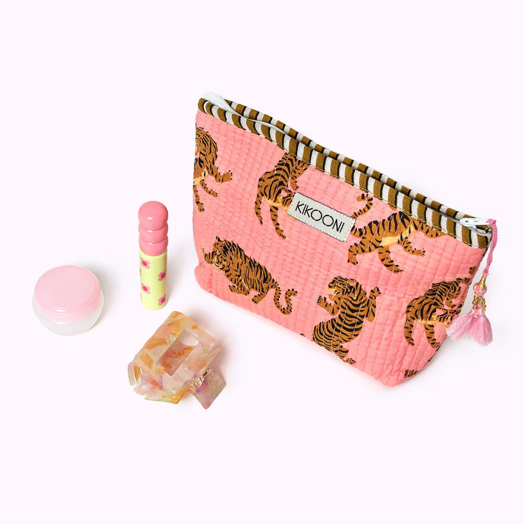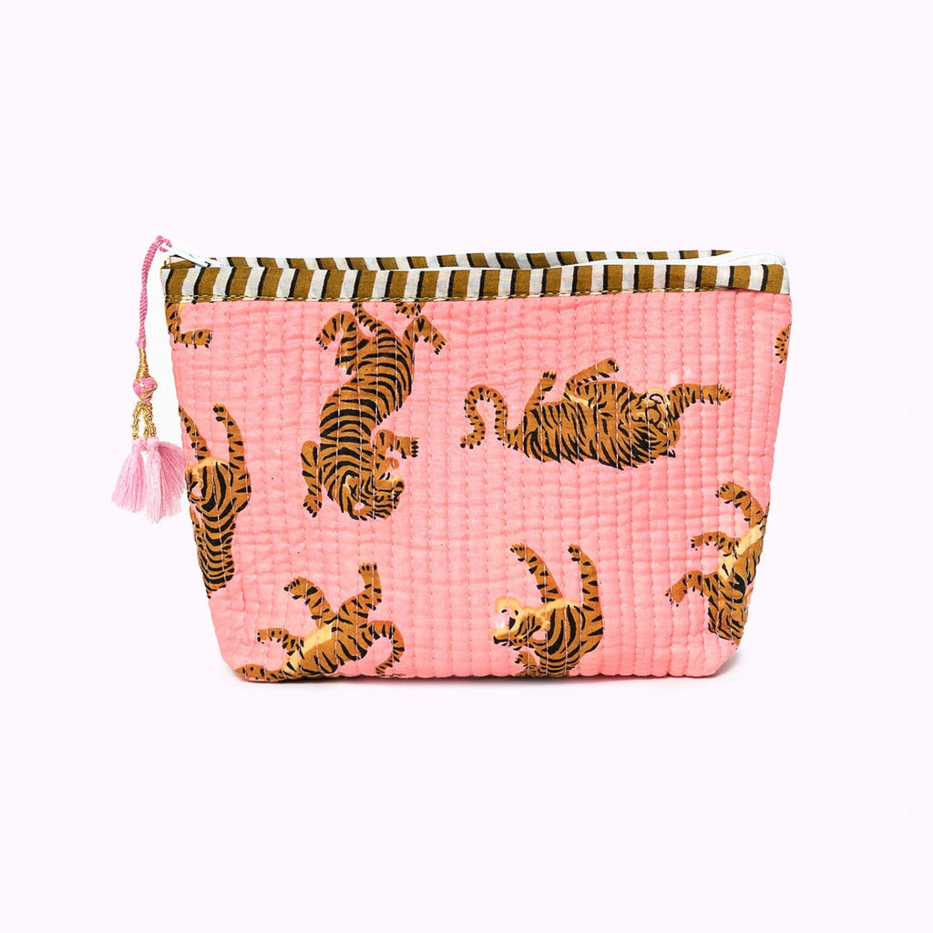 handgemachte Mini Tasche "Electric tigress" für jeden Tag! Details: Maße ( LxHxT) : ca 19 – 21 cm x 14 -16 cm x 3,5 – 4 cm ( Die Größen variieren) Obermaterial aus reiner Baumwolle mit Kantha-Bestickung und (Blockprint) Holzstempel Druck mit natürlichen / azo-freien Farbstoffen Hauptfach zu schließen mit einem Reißverschluss Handgefertigte Quasten-Verzierung Liebevolle Handarbeit und einzigartige Details! Die verspielte und handgemachte Mini Tasche "Electric tigress" ist eine wunderbare Ergänzung zur Kosmetiktasche, zum Shopper oder der Reisetasche. Sie macht das Set perfekt! Da du sie perfekt in deiner Handtasche unterbringen kannst, ist sie perfekt geeignet für Lippenstift und Handcreme, aber auch für dein Geld oder Ausweise ( auch dein Pass findet hier locker Platz!) . Du kannst sie also auch wunderbar als Geldbeutel, kleines Schmincktäschchen oder Reisebegleiter nutzen. Deiner Fantasie sind keine Grenzen gesetzt! Alle wichtigen kleinen Dinge des Lebens kannst du hier organisiert und griffbereit verwahren . Das schönste: Jedes Täschchen ist ein Einzelstück und wird mit viel Liebe in Indien hergestellt. Die Mitarbeiter bedrucken den reinen Baumwollstoff mit Holzstempeln von Hand. Dieses Verfahren wird Blockprint genannt. Anschliessend besticken die Tasche mit der berühmten und tradiotionellen Kantha-Stickerei bestickt und finalisieren die Tasche mit den Quasten-Details am Reissverschluss . Fair, ressourcenschonend und mit kreativem Spirit Das Obermaterial ist aus reiner Baumwolle gefertigt und das Innenfutter aus bedruckter Baumwolle. Eine kleine Produktionsstätte in Jaipur, Indien stellt die bestickten Kosmetiktaschen und fairen Arbeitsbedingungen her. Die Produktion vermeidet es mit großen Maschinen zu arbeiten, wodurch sie große Mengen an Wasser und Strom spart. Der ressourcenschonende Prozess spiegelt das entspannte Arbeitsklima wieder.Wir legen großen Wert auf besondere Einzelstücke, die mit Liebe und kreativem Spirit entstanden sind und weiterhin -auch durch unsere und Deine Unterstützung -entstehen. Vegane Taschen Im Herstellungsprozess werden keine tierischen Produkte verwendet und die Baumwollstoffe werden von Hand mit einem Holzstempel bedruckt. Da die Mitarbeiter die Kantha Bestickung aus Baumwollfäden mit der Nähmaschine anbringen und den Polyester Innenteil per Nähmaschine einnähen, entsteht ein rein veganes Produkt.
