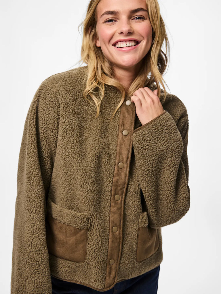 Teddyjacke - Halsausschnitt: Kentkragen - Ärmel: Langarm - Verschluss: Druckknopf - Taschen: Fronttaschen Qualitätsbeschreibung Geschlecht: Damen Herstellung: Rundstrick Zusammensetzung: 100 % Polyester – recycelt Nachhaltigkeitsbeschreibung Das Hauptmaterial dieses Produkts besteht zu mindestens 50 % aus recyceltem Polyester. Recycelter Polyester schont natürliche Ressourcen und reduziert die Abfallmenge.