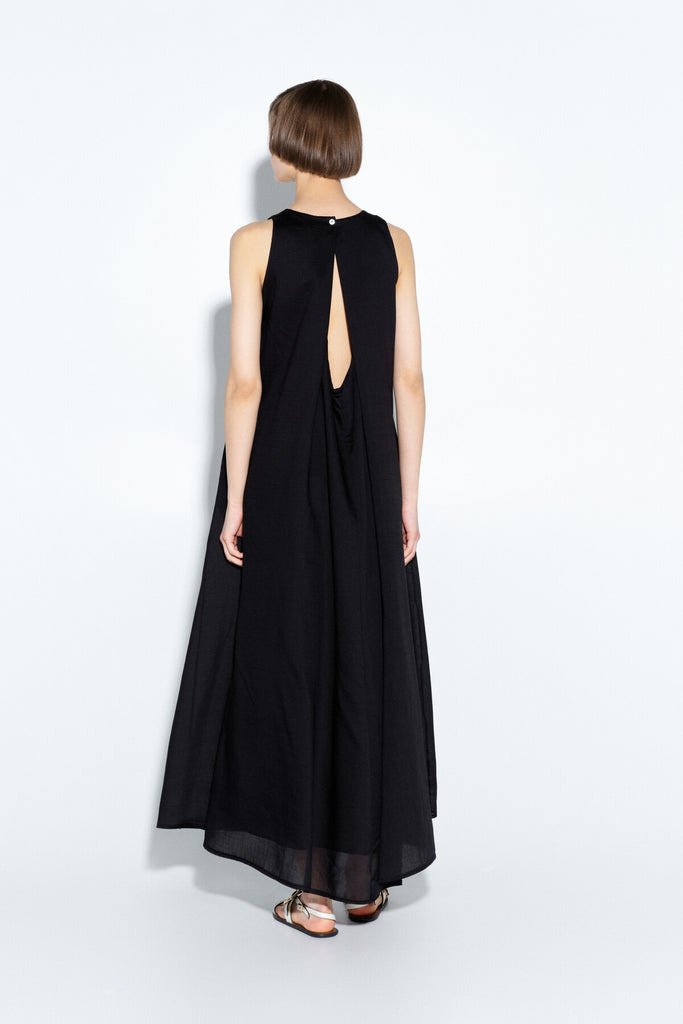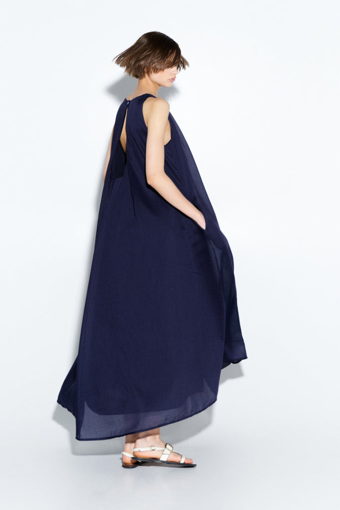 Flared Line. Verschluss im Nacken mit kleinem Knopf.