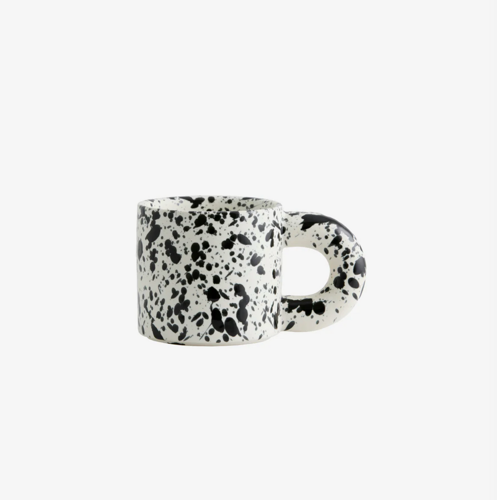 Die Keramiktasse JOSE verfügt über einen voluminösen Henkel, der der Tasse einen auffälligen Effekt verleiht. Es hat eine halbmatte Glasur mit einem Spritzermuster auf der Oberfläche. Der Becher ist in mehreren verschiedenen Farben erhältlich und lässt sich leicht kombinieren.