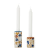 Die Kerzenhalter Anniversary von Bloomingville werden im Zweierset geliefert und sind aus Steingut mit einem grafischen Druckmotiv in warmen Farben gefertigt. Die unterschiedlichen Höhen und das illustrative Design sorgen für einen lebendigen und dekorativen Look - schön sowohl zusammen als auch einzeln.