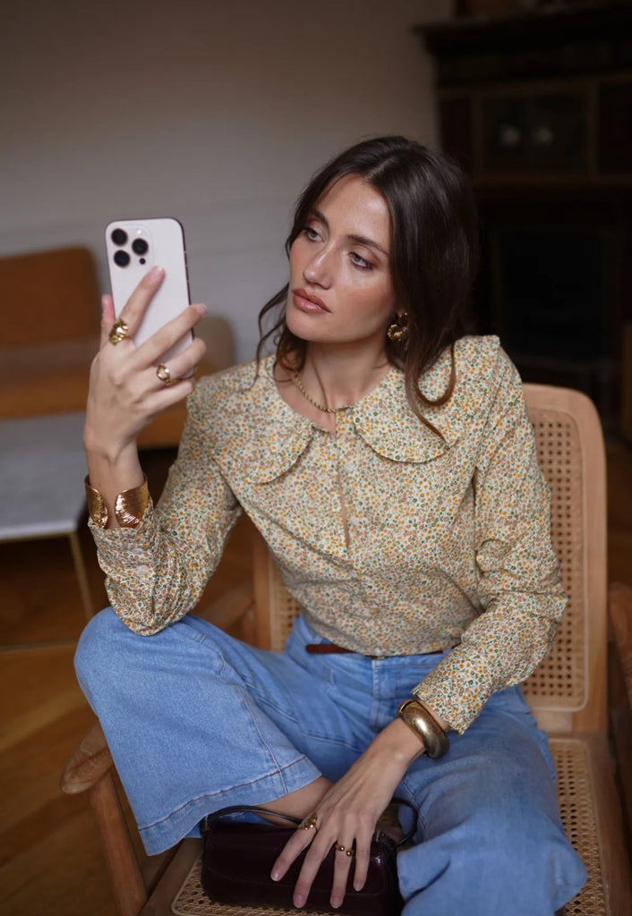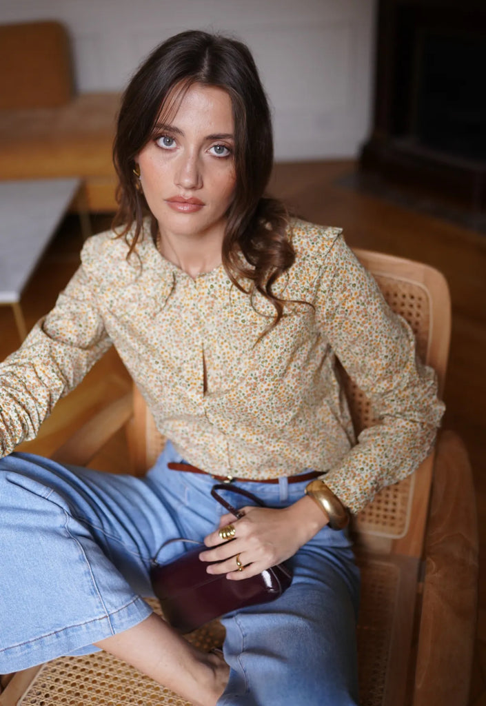 Süße Bluse mit großem Kragen und kleinem all over Blumenprint.