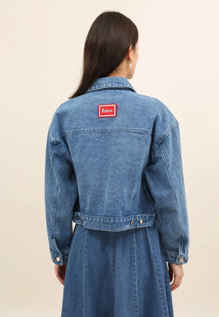 Die Jacke präsentiert sich in einer schönen blauen Denim-Waschung und ist mit zwei Brusttaschen, Knopfleiste und klassischen Denim-Nähten ausgestattet. Ein dezentes Logo-Patch auf der Rückseite setzt einen stilvollen Akzent und verleiht der Jacke einen besonderen Charakter.