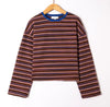 Das Oberteil ist ein langärmeliges, locker geschnittenes Shirt mit einem klaren, grafischen Streifenmuster. Hier die Details: