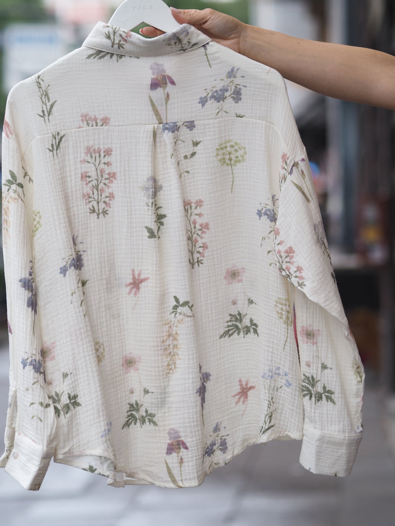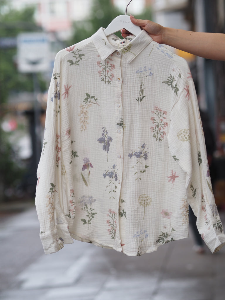 Klassische Hemdbluse aus Baumwolll- Musselin mit Wildblumen Print.