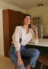 mehrere Schichten: ein dünnes Hemd, einen gerippten Rollkragenpullover oder ein einfaches T-Shirt darunter, je nach Kälte. Das sandige Beige fängt das Licht der Jahreszeit ein und passt gut zu allem, von Raw Denim bis hin zu dunkleren Oberbekleidungstönen. Es ist der weiche Strick, den Sie morgens überziehen und bis zum