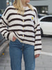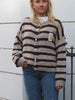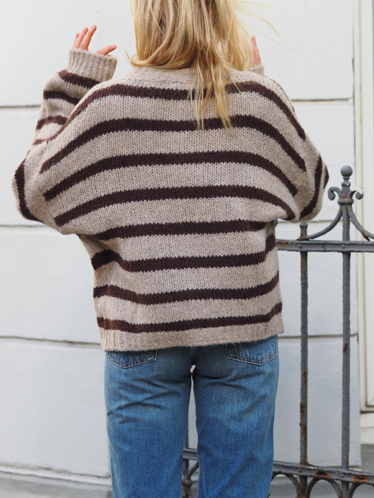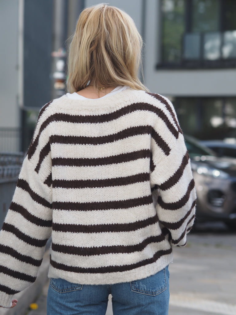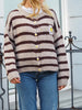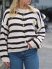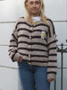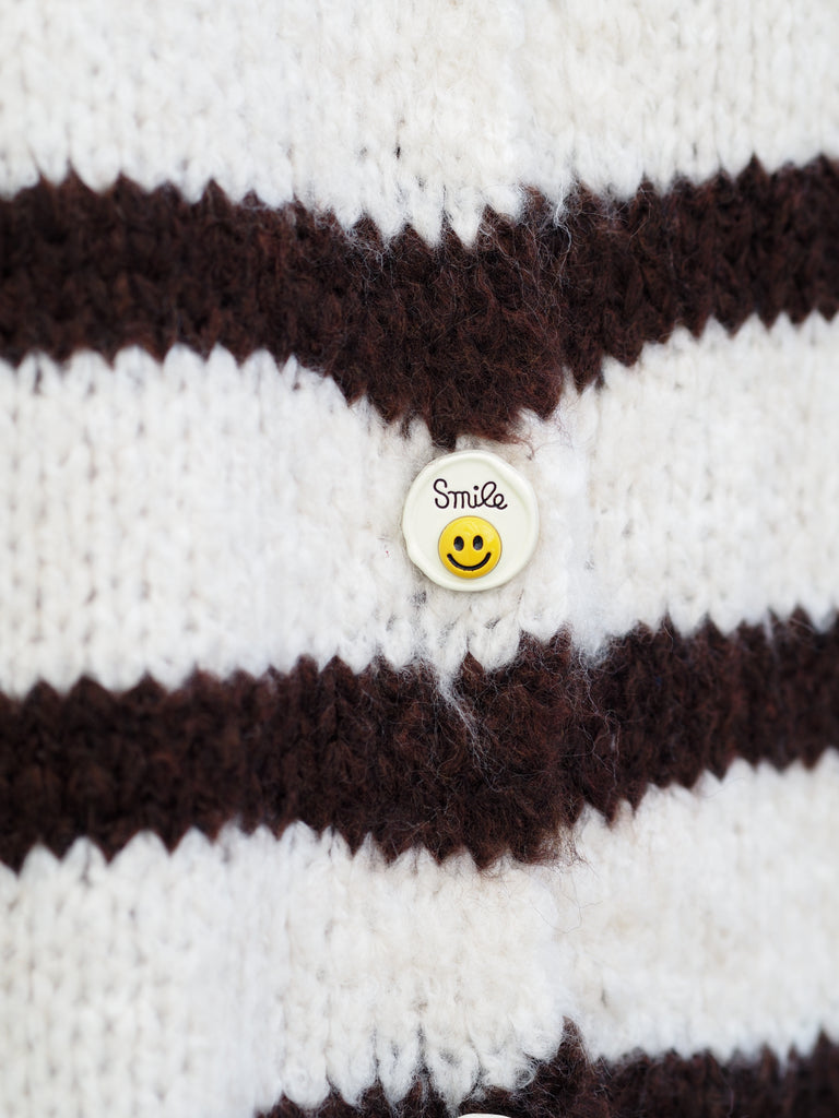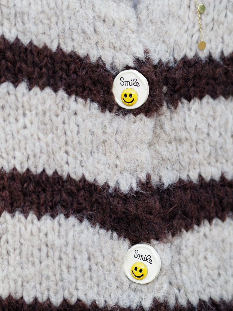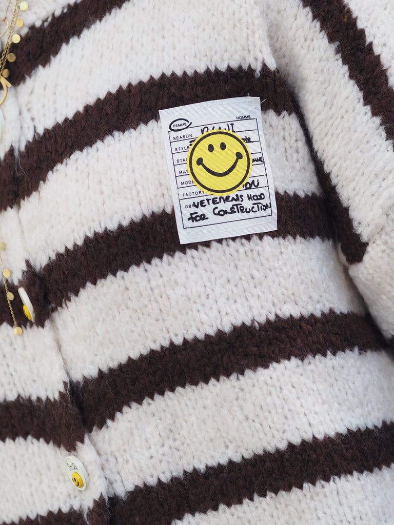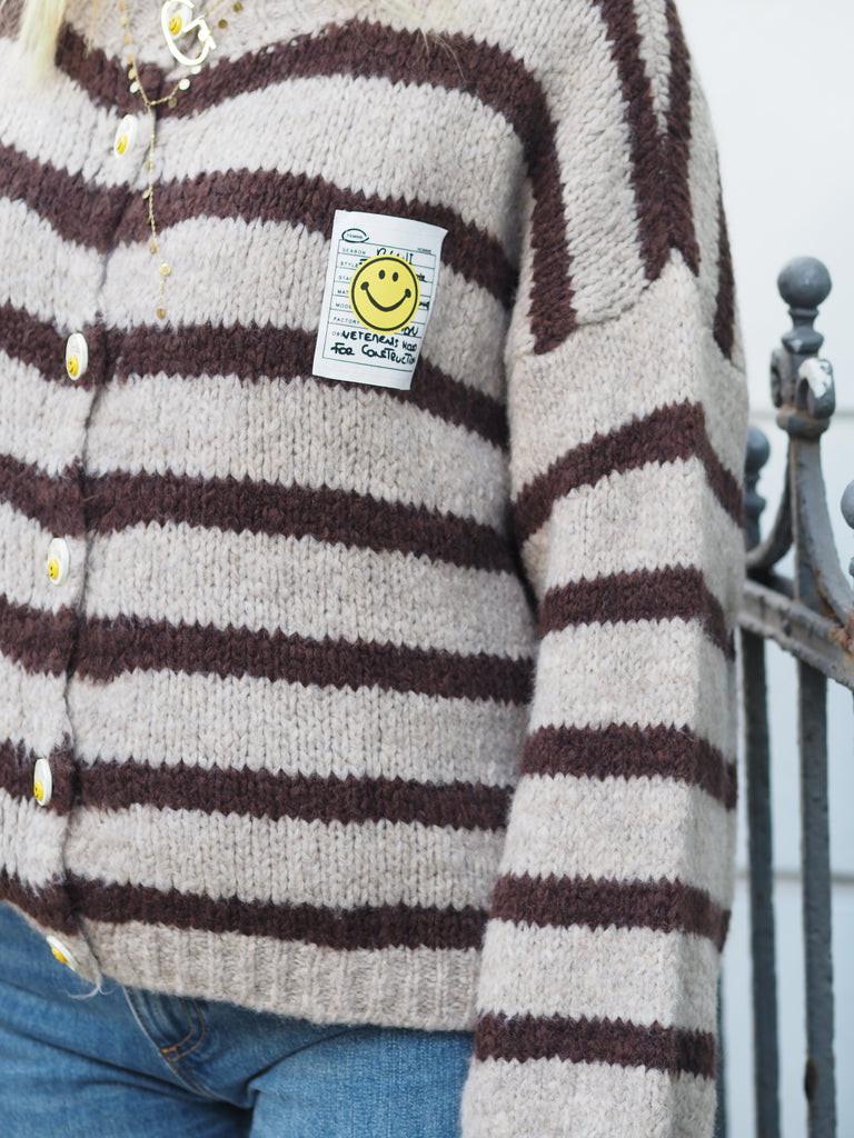 Onesize fits all Strickjacke im Ringeldesign mit Smiley Knöpfen und Smiley Patch an der Braust.