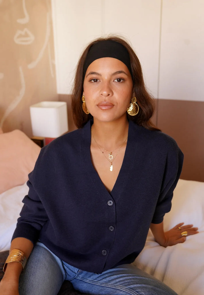 Weicher Basic Cardigan mit V-Ausschnitt und Knopfleiste in Navy Blue.