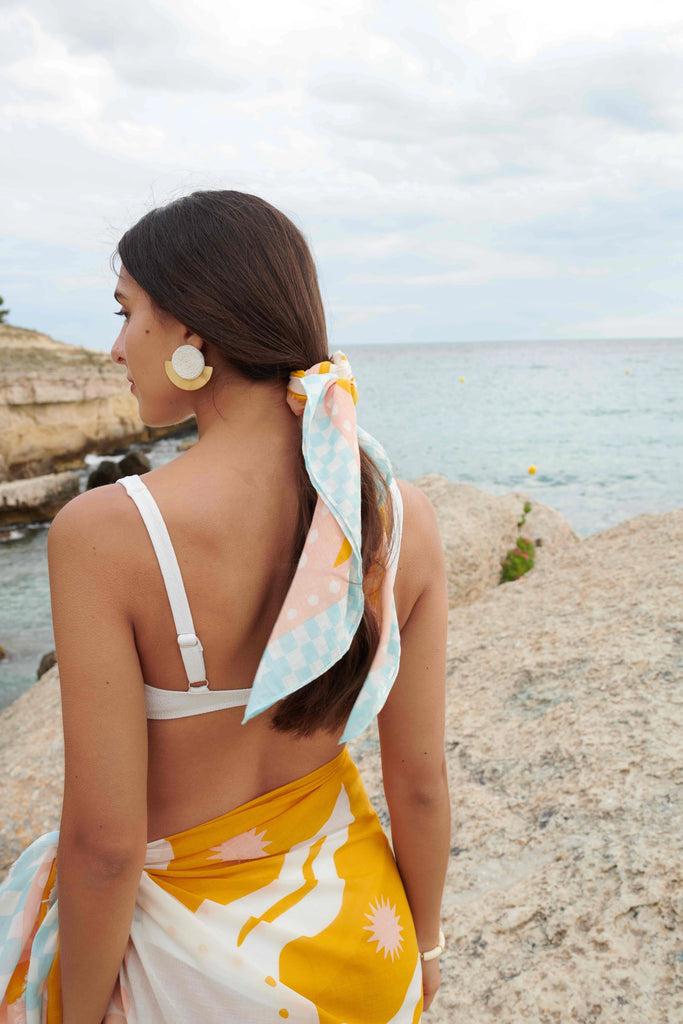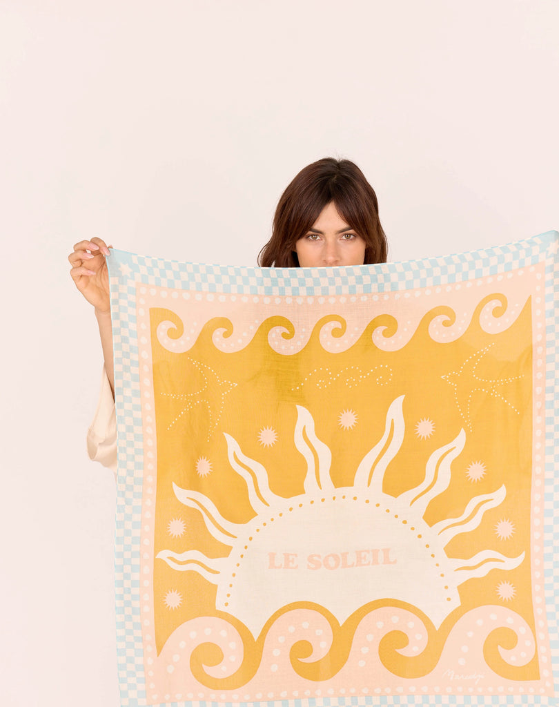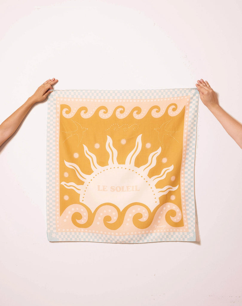 Bedrucktes Baumwolltuch, 80 x 80 cm Einzigartiges Motiv "Die Sonne", entworfen von unserem Kreativstudio