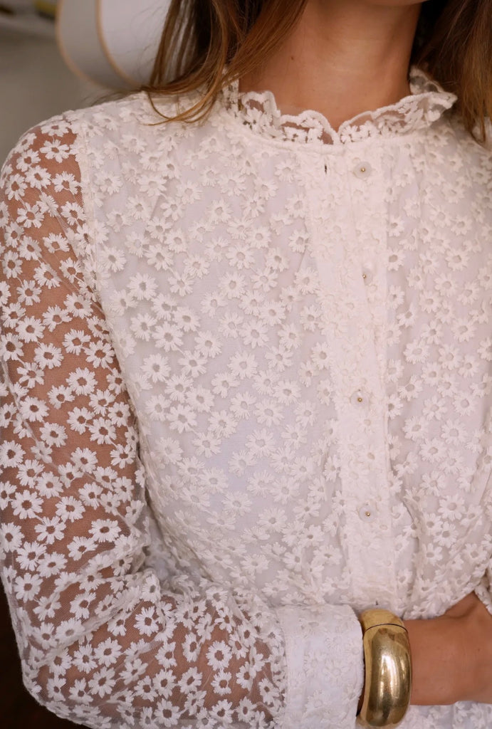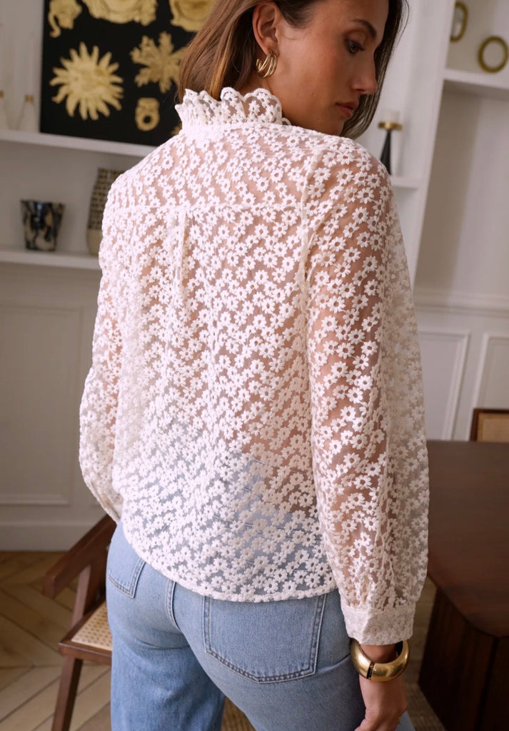 tolle Spitzenbluse mit Baumwollfutter vorn. Hinten transparente Spitze.