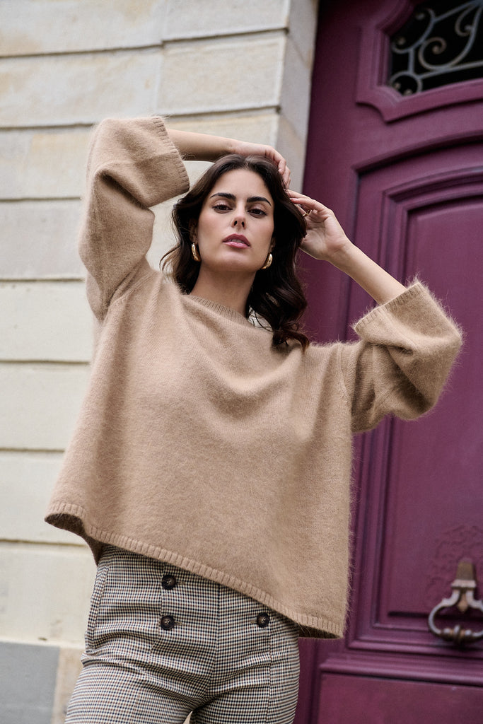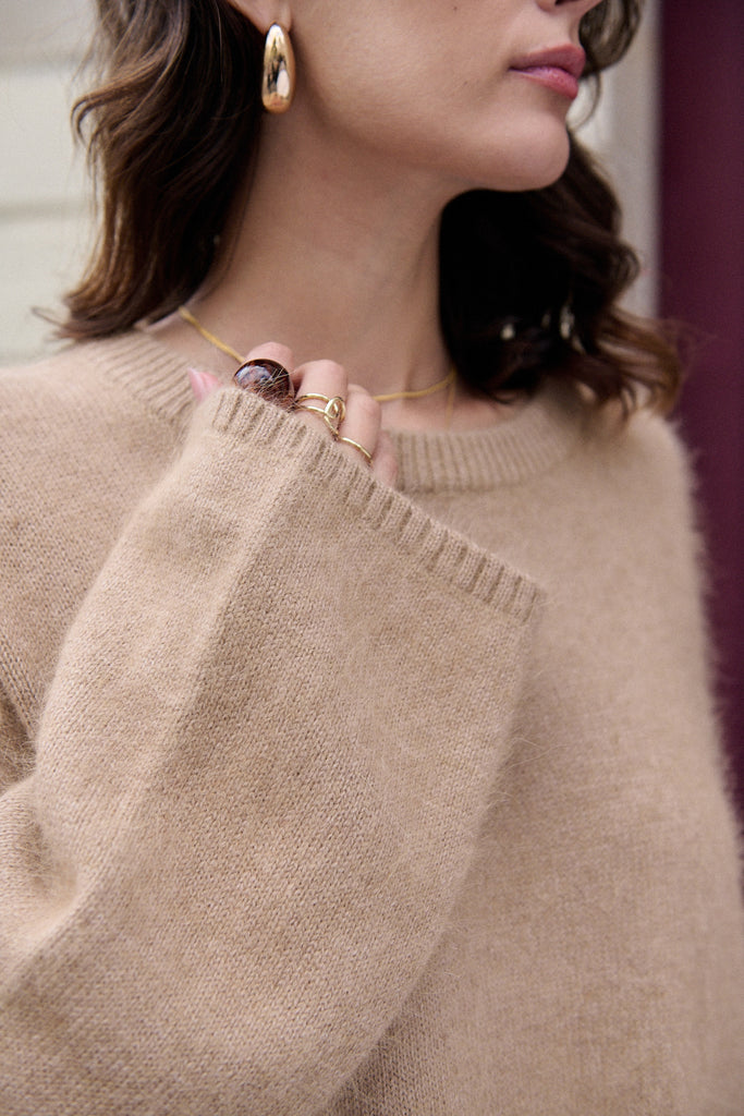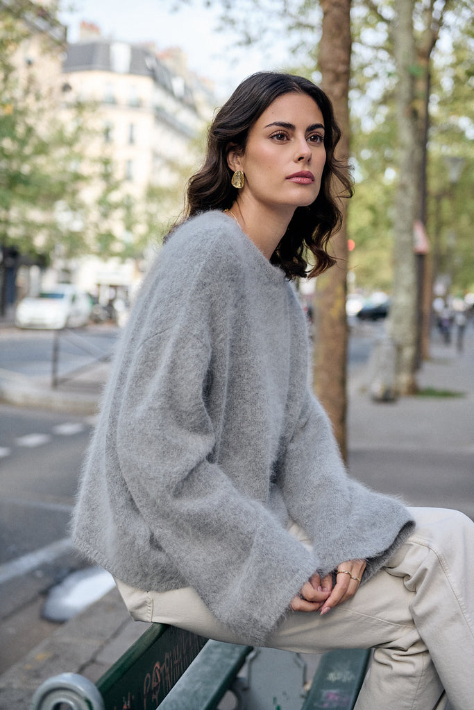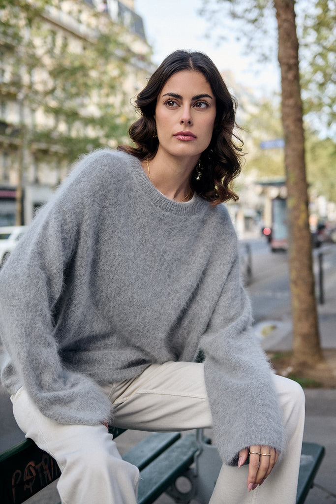 Premium Pullover aus gemischtem Angora mit langen Ärmeln und Oversize-Passform.Details: Rundhalsausschnitt, Gerippte Abschlüsse, weite ÄrmelLänge ab Schulter: 62 cm für Größe S ⁄ MDas Model ist 1,76 m groß und trägt Größe S ⁄ M