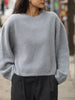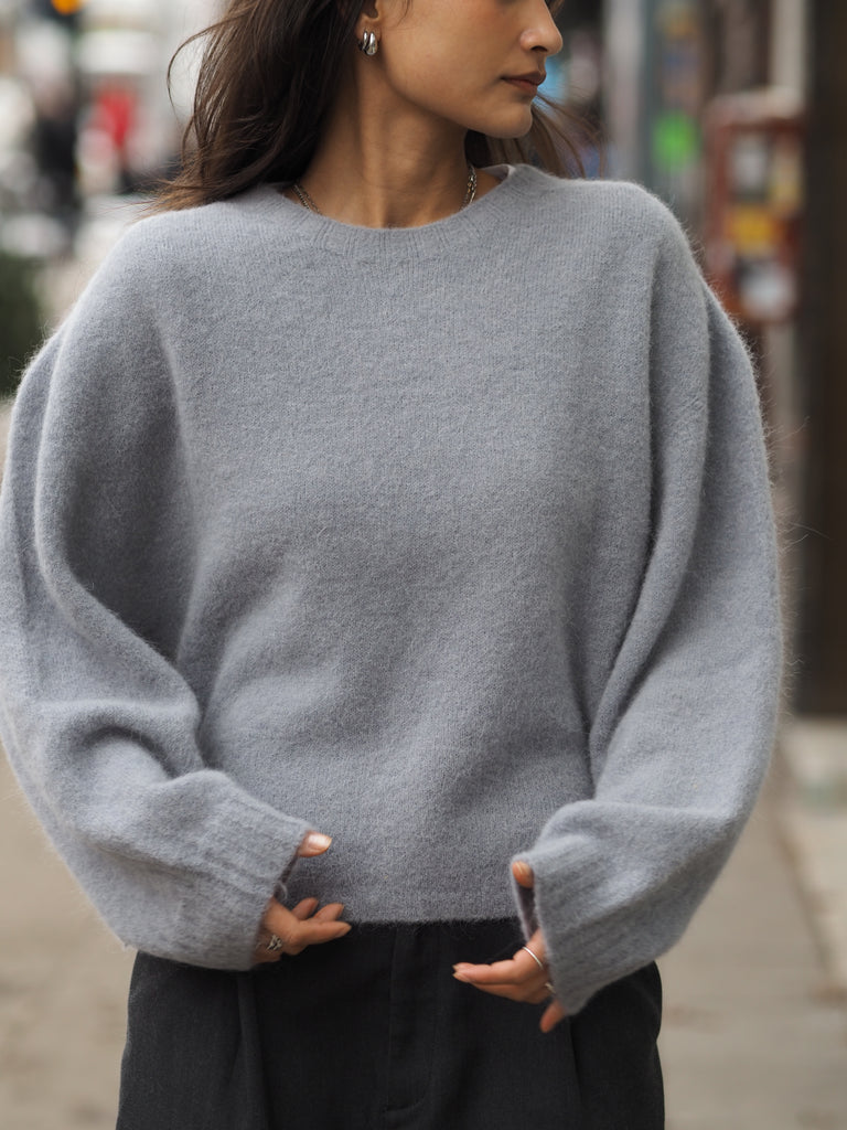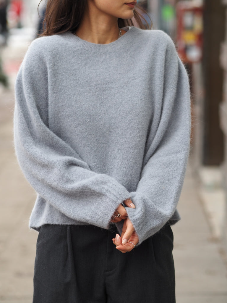 Der Basicpullover Mira besteht aus 60 % Wolle und hat einen kurzen Schnitt mit weiten Ärmeln.