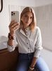 Die Bluse überzeugt mit einem angenehmen Tragegefühl und einem lockeren Schnitt, der sich sowohl casual zu Jeans als auch schicker zu Stoffhosen oder Röcken kombinieren lässt. Die kontrastierenden Knöpfe setzen zusätzliche Akzente und machen den Look besonders hochwertig.