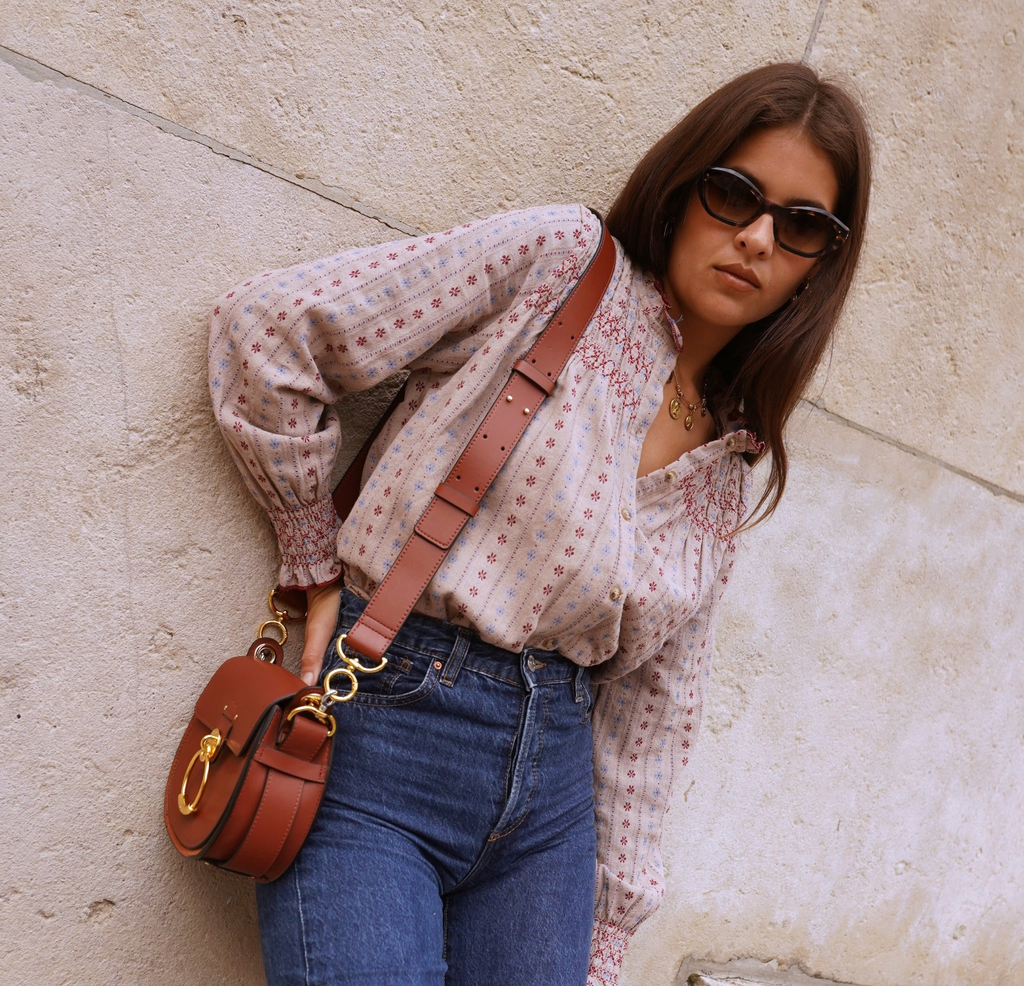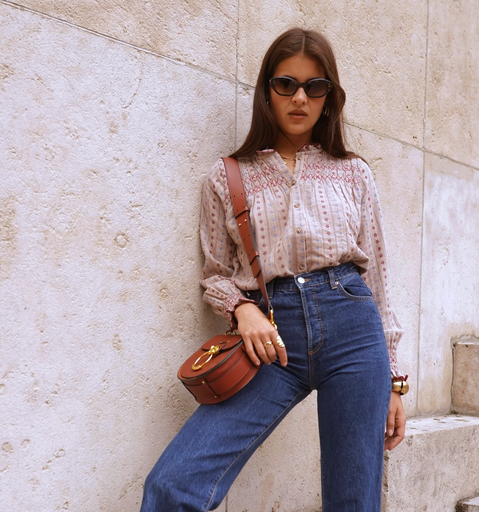 Die Naïm Bluse vereint florale Poesie und raffinierte Details in einer femininen, unkonventionellen Interpretation der klassischen Bluse. Gefertigt aus einem fließenden Stoff mit zartem Blumenprint (inspiriert vom Charlotte Tanktop) besticht sie durch ihre natürlichen Farbtöne – eine sanfte Mischung aus Braun, Ecru und Ocker. Der strukturierte Stehkragen verleiht ihr einen eleganten Touch, während die gesmokten Manschetten den langen Ärmeln schönes Volumen verleihen und so für einen dezent romantischen Bluseneffekt sorgen. Dank des bequemen, geraden Schnitts lässt sie sich ideal in Jeans oder über einem fließenden Rock tragen. Ein ideales Kleidungsstück, um Herbst-Winter-Looks mit Weichheit und Stil aufzupeppen. Details: Blumenprint-Hemd (Braun, Ecru, Ocker) Hoher Kragen Lange Ärmel mit gesmokten Manschetten