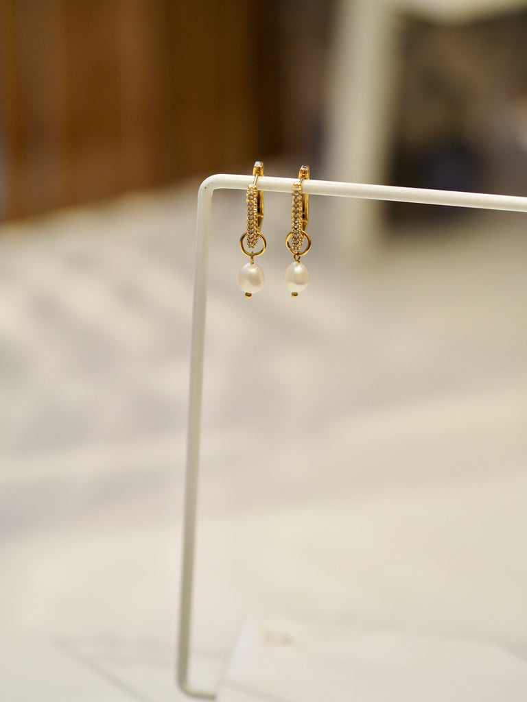 · Eine Mischung aus modern (rechteckige Creole) und klassisch (Perlenanhänger).