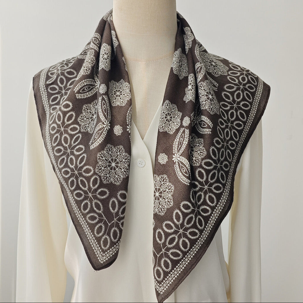 Quadratisches Halstuch mit Muster in zwei verschiedenen Farben erhältlich.