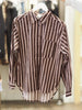 Farben: Dunkelbrauner Untergrund mit hellrosa vertikalen Streifen.