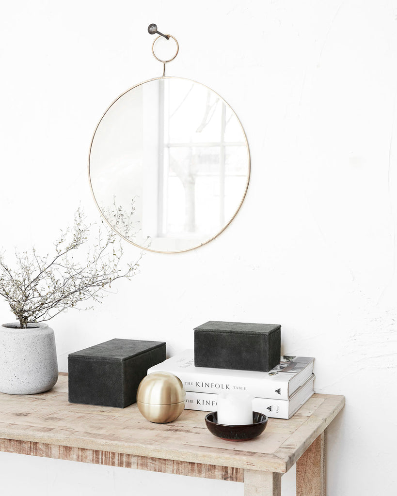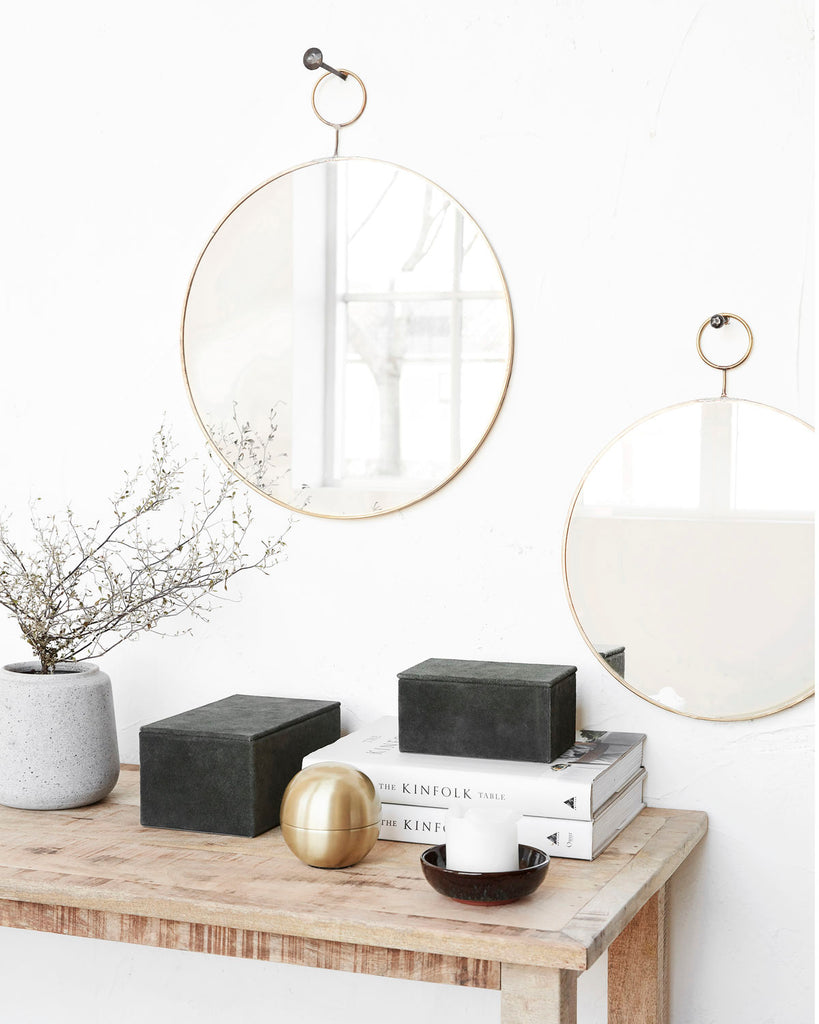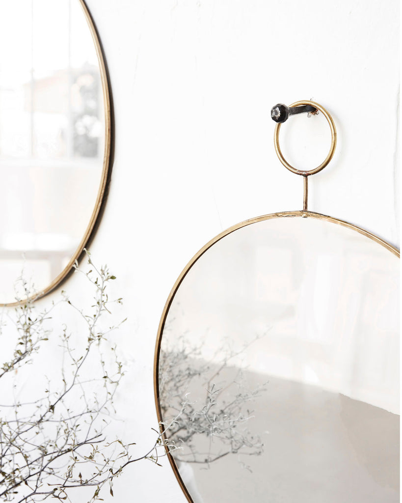 Schaffen Sie mit einem neuen Spiegel neue Dimensionen in Ihrem Zuhause. The Loop von House Doctor ist ein stilvoller und eleganter Spiegel, der perfekt in eine moderne Einrichtung passt. Der Spiegel hat einen schmalen Messingrahmen und einen kleinen Ring an der Oberseite, an dem er an einem Nagel aufgehängt werden kann. Verwenden Sie den Spiegel als hübsche Wanddekoration in Ihrer Einrichtung. Dank des funktionalen Designs lässt er sich einfach umhängen und stimmig in die Gestaltung jedes Raumes einbinden. Hängen Sie den Spiegel einzeln im Badezimmer, im Schlafzimmer oder im Wohnzimmer auf oder setzen Sie ihn für einen einzigartigen und persönlichen Look in Kombination mit dem größeren The Loop-Spiegel in Szene.