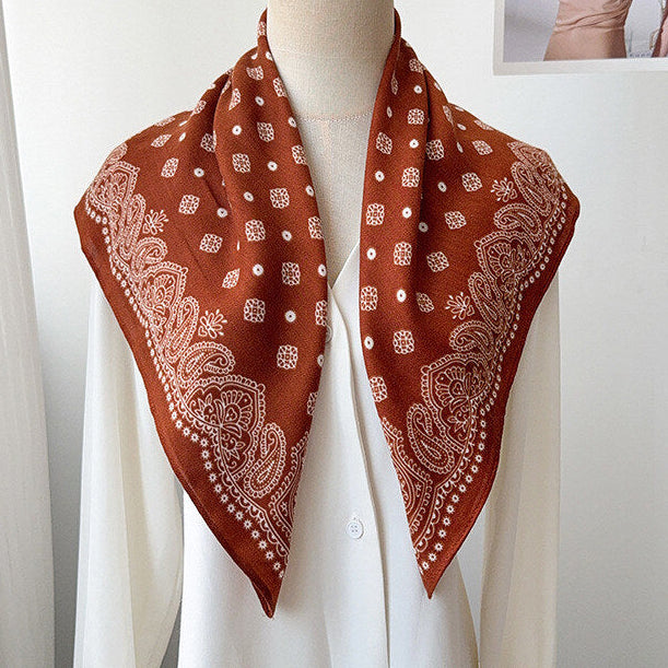 Quadratisches Halstuch mit Muster in zwei verschiedenen Farben erhältlich.