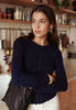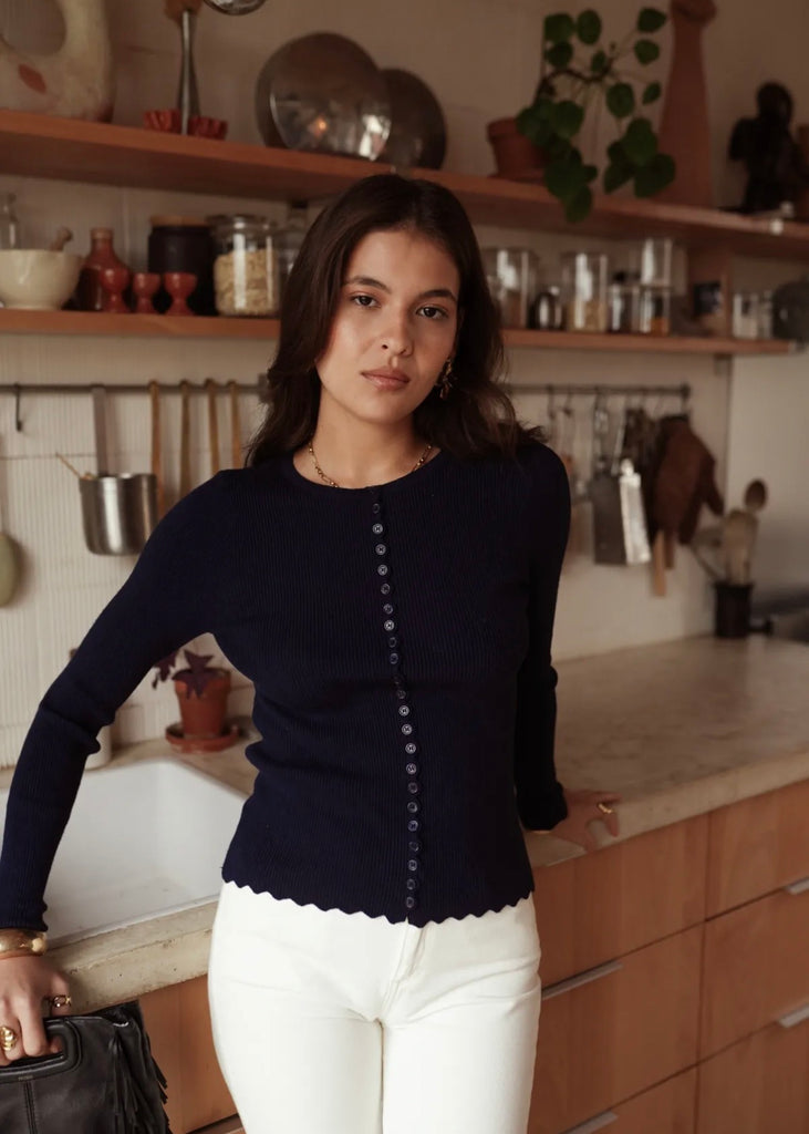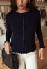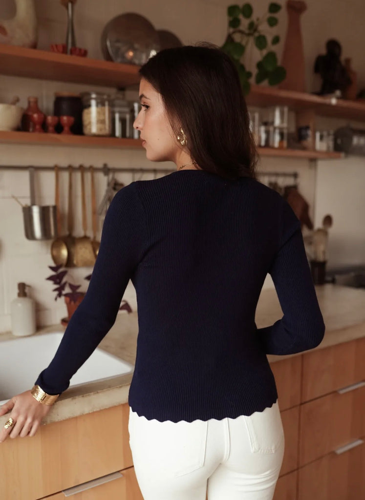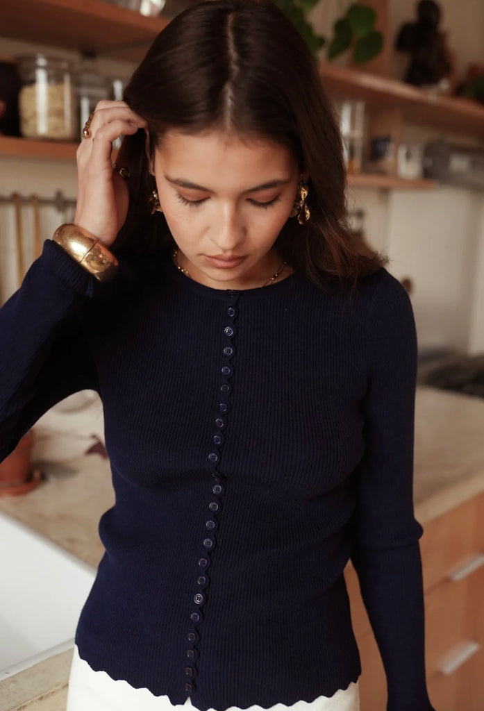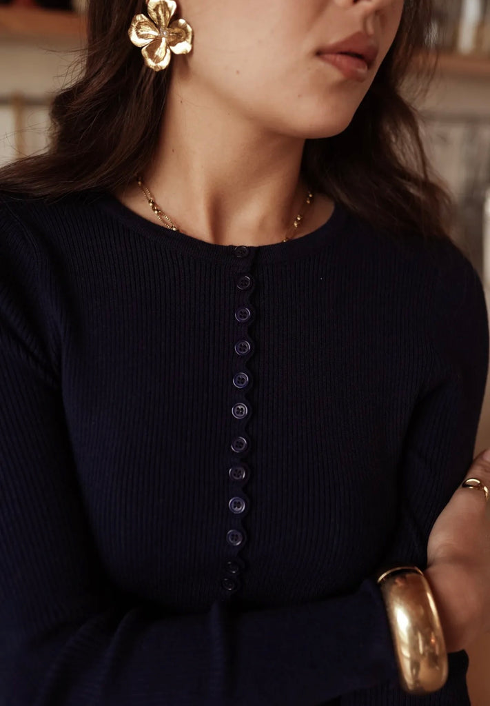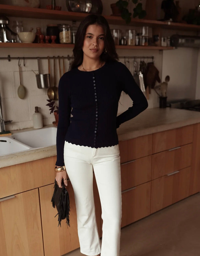 Creme oder Navy farbenes Langarmshirt mit Knopfleiste – Figurbetonter Schnitt