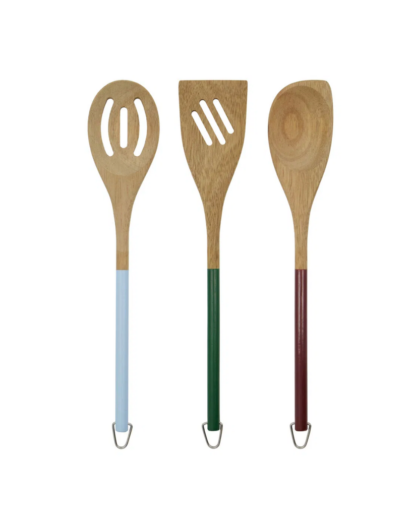 Bringe mit diesem Set aus drei Kochlöffeln aus Akazienholz einen fröhlichen Farbtupfer in deine Küche. Die Löffel mit den bunten Griffen sind nicht nur ein stilvoller Hingucker, sondern auch perfekt zum Rühren, Mischen und Servieren deiner alltäglichen Gerichte.