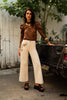 Diese Jeans vereint lässige Eleganz mit liebevollen Details. Der weite Beinverlauf in knöchellanger Länge sorgt für eine moderne, fließende Silhouette, während der hohe Bund die Taille schön betont. Die helle Ecru-Waschung verleiht der Jeans eine natürliche, leichte Ausstrahlung – perfekt für stilvolle Looks das ganze Jahr über.