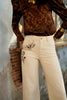Ein besonderes Highlight ist die feine florale Stickerei an der Hüfte, die dem Design eine feminine, bohemische Note verleiht und die Jeans zu einem echten Blickfang macht. Der hochwertige Denim fühlt sich angenehm an und bietet gleichzeitig guten Halt und Formstabilität.