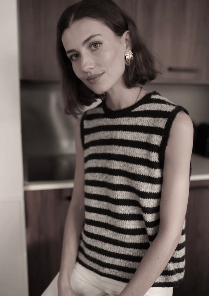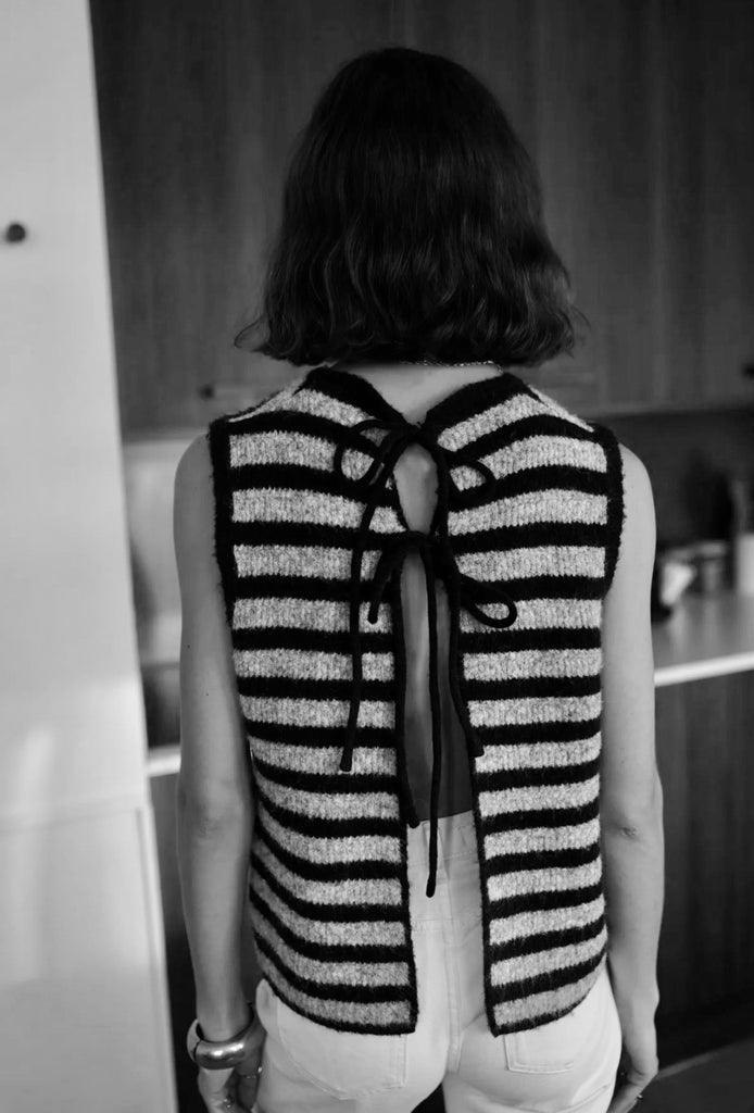 Pullunder gestreift mit Schleifen, grau/ schwarz