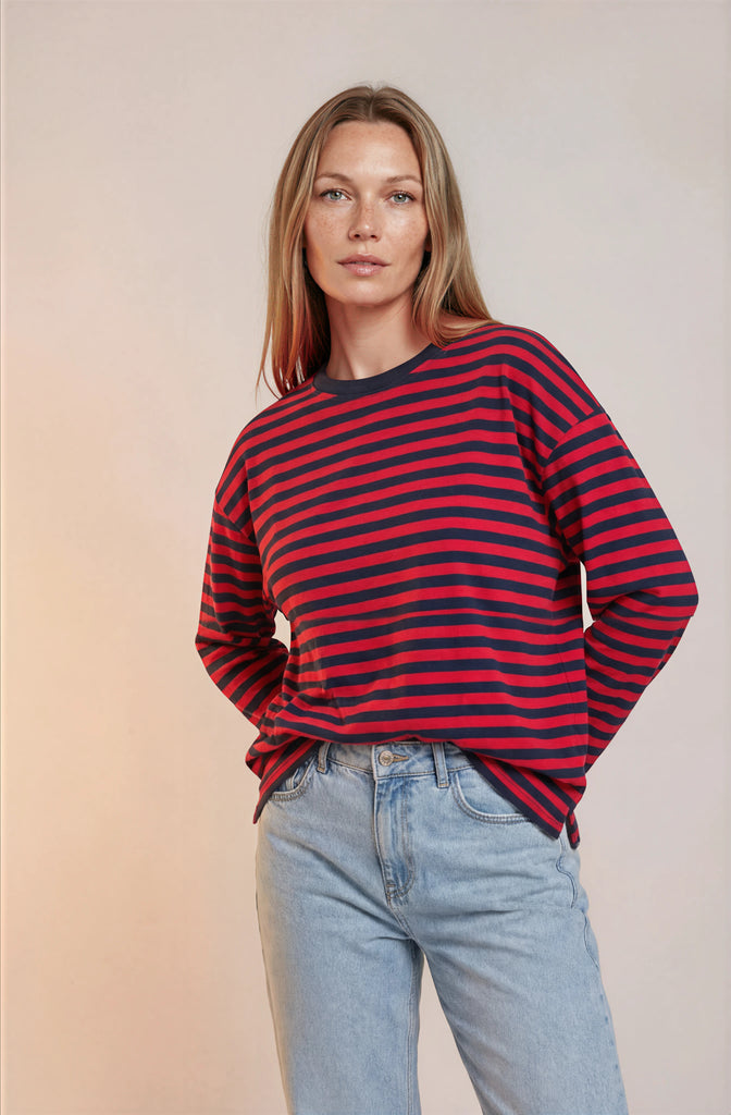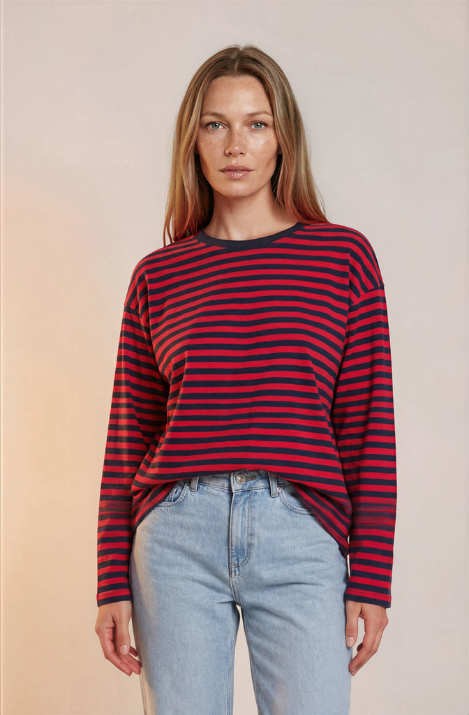 Schönes weites Ringelbasic Shirt in Rot Marine.