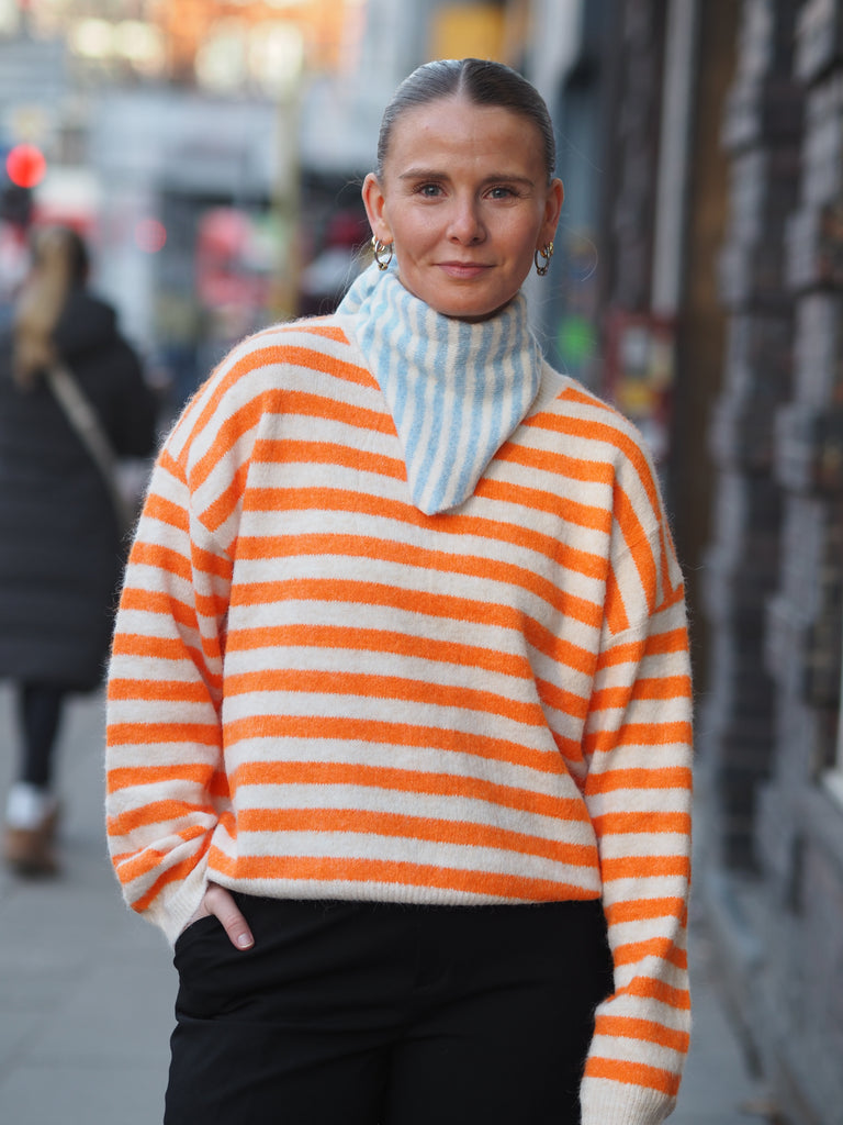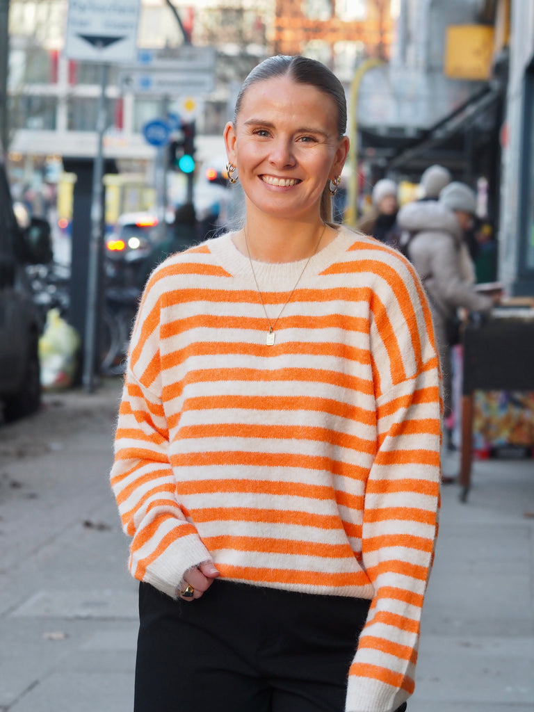 Gestreifter Pullover in Cremeweiß/ Orange.