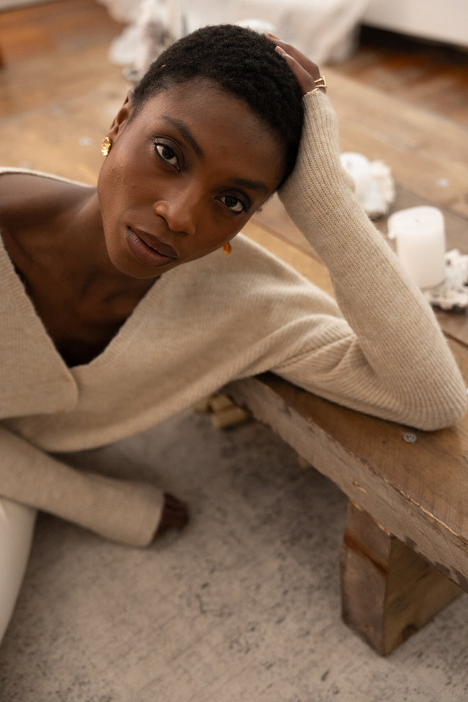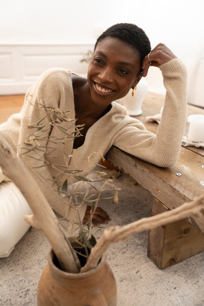Kann als Pullover mit Öffnung hinten oder als Strickjacke mit Öffnung vorne getragen werden