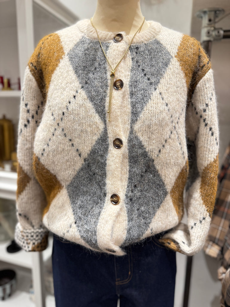 Schöne Strickjacke in toller Farbkombi mit Rautenmuster.