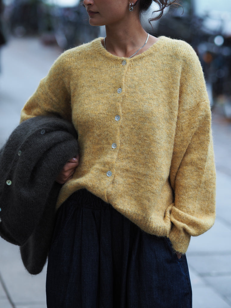 Ein gutes Basic für den Übergang zum Herbst. Klassische Strickjacke mit Rundhalsausschnitt und Perlmutt Knöpfen.