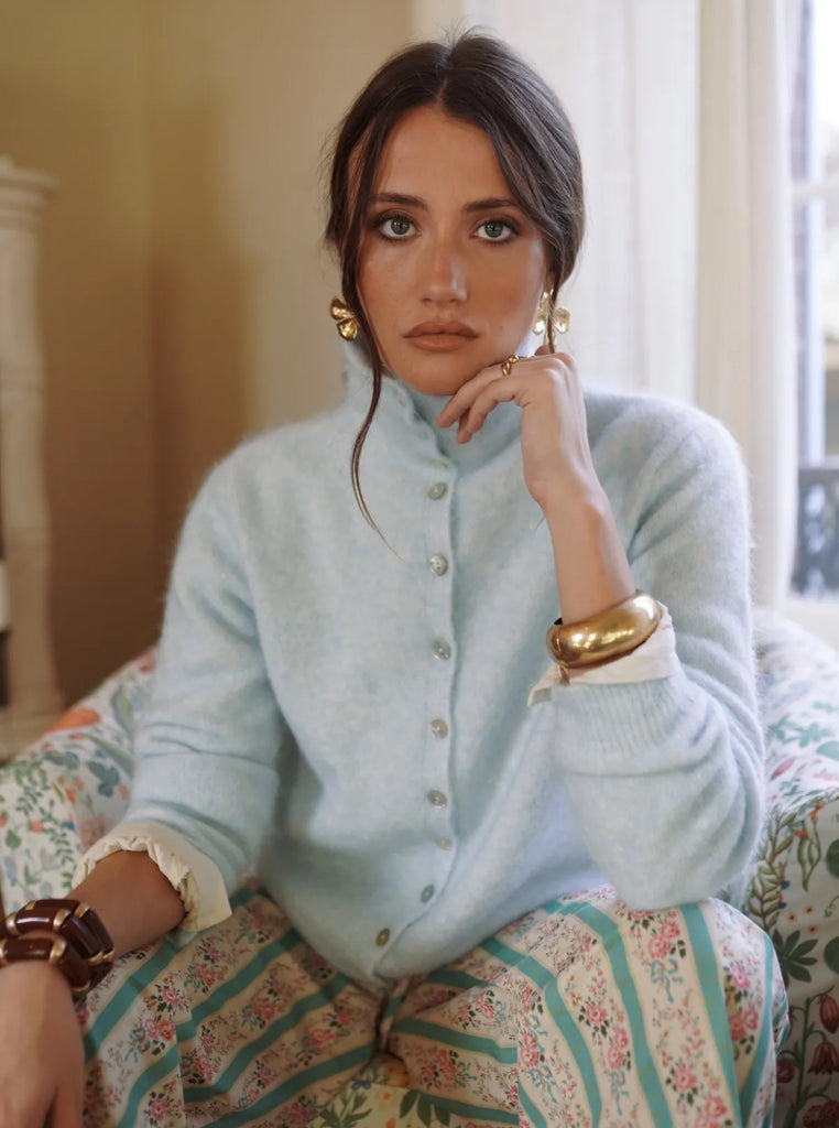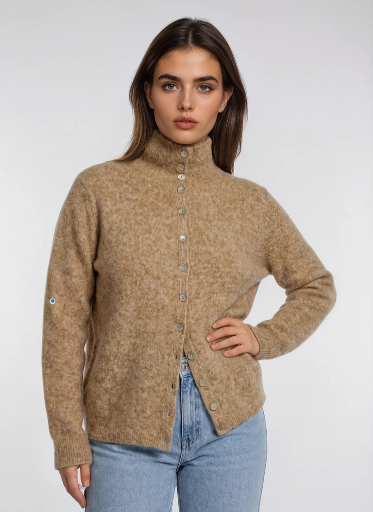 Indira, ein Strickjacke mit weichem Fall, ist aus einem weichem, wolligen Stoff gefertigt. Ob zugeknöpft oder offen getragen, Indira verleiht einen klaren, modernen Look. Details • Weicher Strick • Perlmuttknopfleiste vorne • Kann offen oder geschlossen mit Stehkragen getragen werden • Lange Ärmel • Gerader Schnitt • Saubere Verarbeitung
