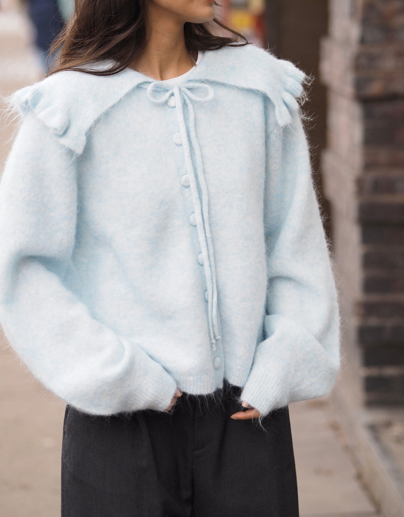 Schöne Strickjacke mit Großem Kragen und Zugband. Detailverliebt!