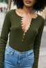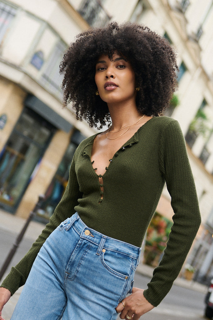 Langarm Strickoberteil mit offener Knopfleiste.